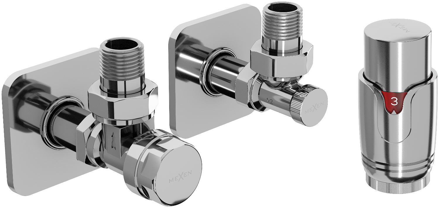Komplet obsahuje přívodní a uzavírací radiátorový ventil