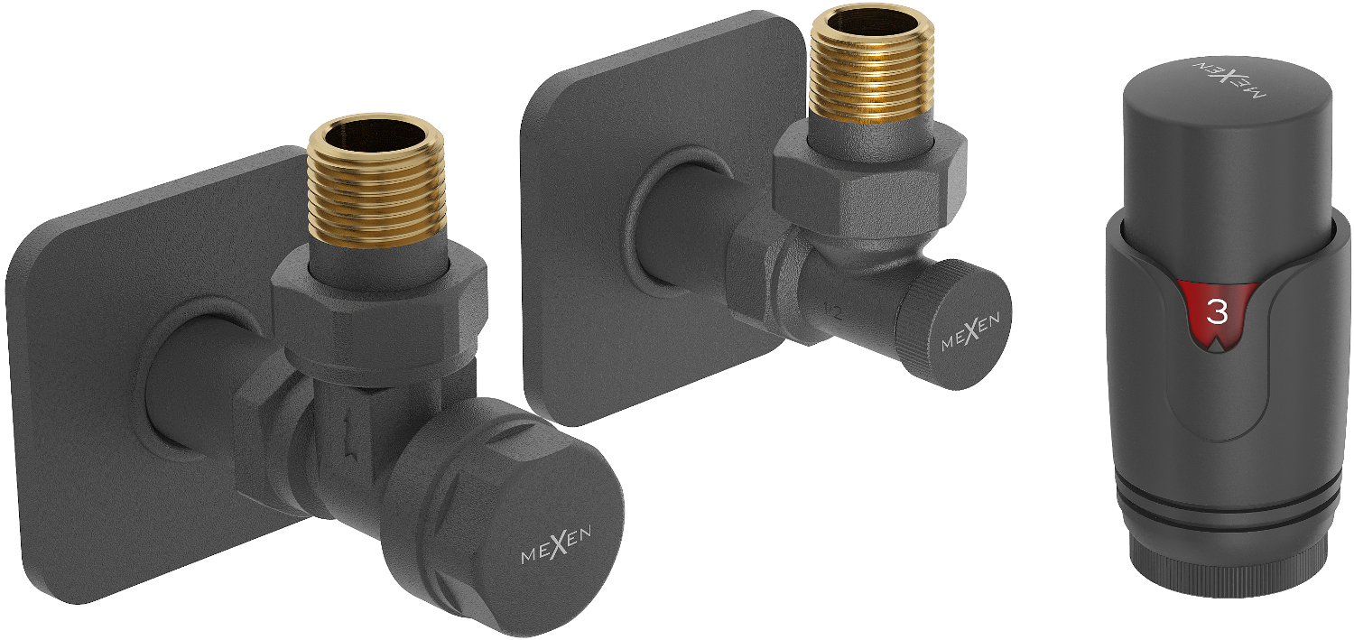 Součástí sady je napájecí a uzavírací ventil radiátoru