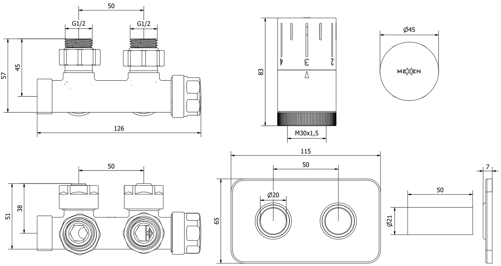 Možnost připojení hlavice z levé nebo pravé strany ventilu