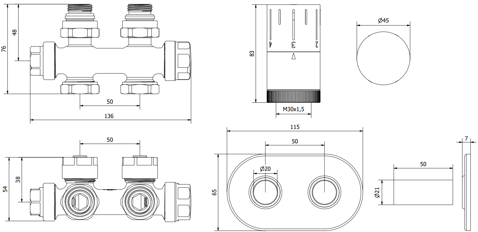 Možnost připojení hlavice z levé nebo pravé strany ventilu
