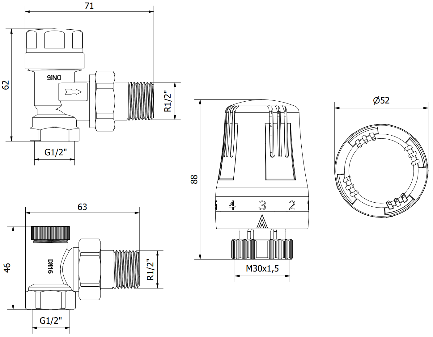 Součástí balení jsou ventily napájecího a uzavíracího radiátoru