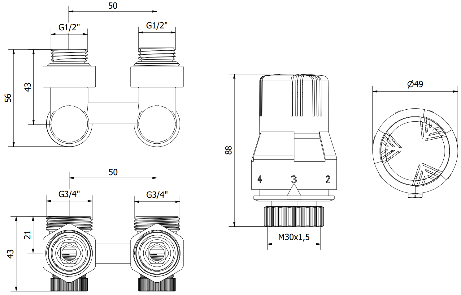 Průměr připojení ventilu: G 1/2" a G 3/4"