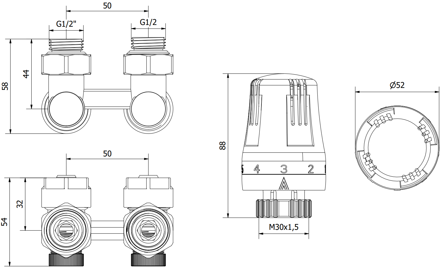 Průměr připojení: G 1/2" a pex 16x2 mm