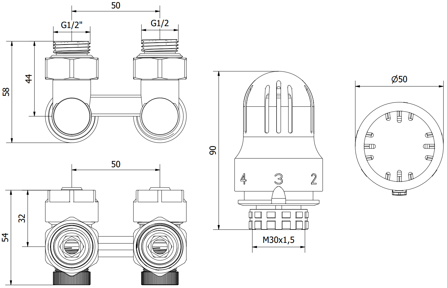 Průměr přípoje: G 1/2" a pex 16x2 mm