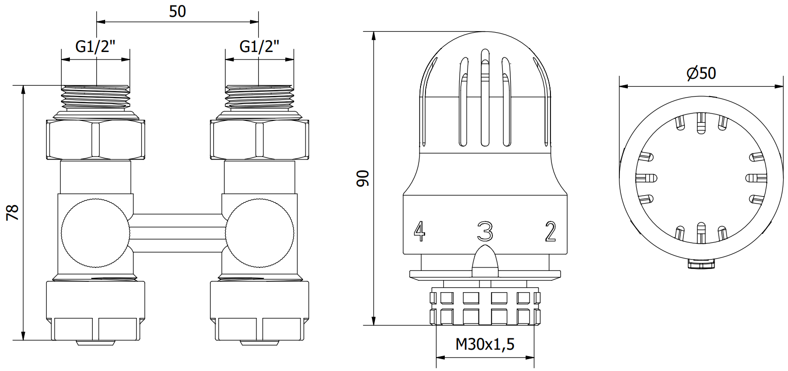 Průměr připojení: G 1/2" a pex 16x2 mm