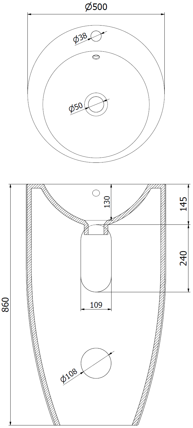 Umyvadlo má otvor, ve kterém lze namontovat baterii. Umožňuje to ušetřit cenný prostor v koupelně a zvýraznit její estetiku. Toto řešení také usnadňuje udržování čistoty kolem umyvadla.