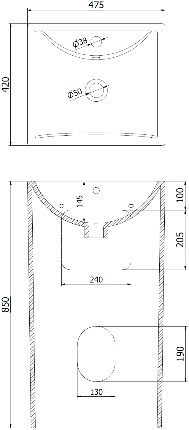 Umyvadlo má otvor, ve kterém lze namontovat baterii. Umožňuje to ušetřit cenný prostor v koupelně a zvýraznit její estetiku. Toto řešení také usnadňuje udržování čistoty kolem umyvadla.