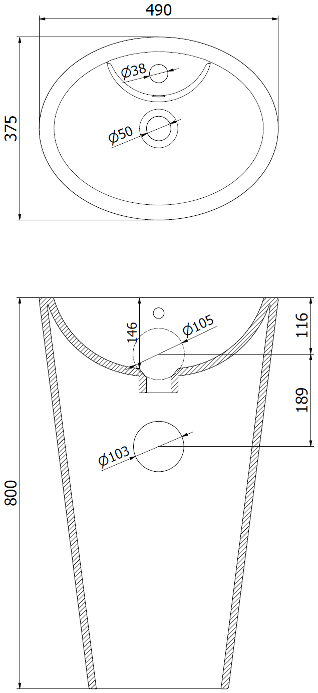 Umyvadlo má otvor, ve kterém lze namontovat baterii. Umožňuje to ušetřit cenný prostor v koupelně a zvýraznit její estetiku. Toto řešení také usnadňuje udržování čistoty kolem umyvadla.