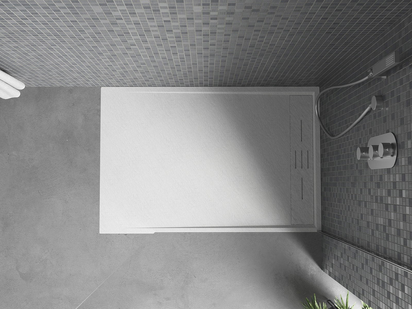 Povrch sprchové vaničky svou strukturou připomíná kámen. Představuje jedinečné spojení přírodního vzhledu s moderním uspořádáním interiéru. Dodává charakter, podtrhuje estetiku a eleganci designu koupelny a okouzluje svou formou.