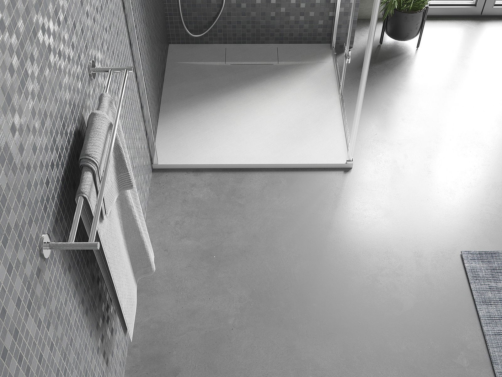 Povrch sprchové vaničky svou strukturou připomíná kámen. Představuje jedinečné spojení přírodního vzhledu s moderním uspořádáním interiéru. Dodává charakter, podtrhuje estetiku a eleganci designu koupelny a okouzluje svou formou.