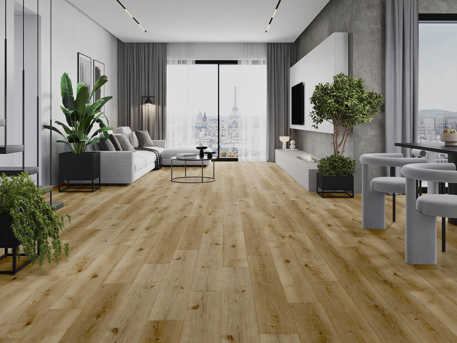 Kombinace stylu a funkčnosti, naše vinylové panely jsou ideální volbou pro každého interiér. Díky tloušťce 6,5 mm a 4stranné V-drážce se panely perfektně hodí do různých aranžmá. Vodotěsnost 100% a povrch usnadňující čištění zajišťují, že jsou praktické a snadno použitelné. Integrovaná podložka IXPE zajišťuje komfort a klid, a jejich odolnost proti mechanickému poškození a možnost instalace na podlahové vytápění jsou další výhody.