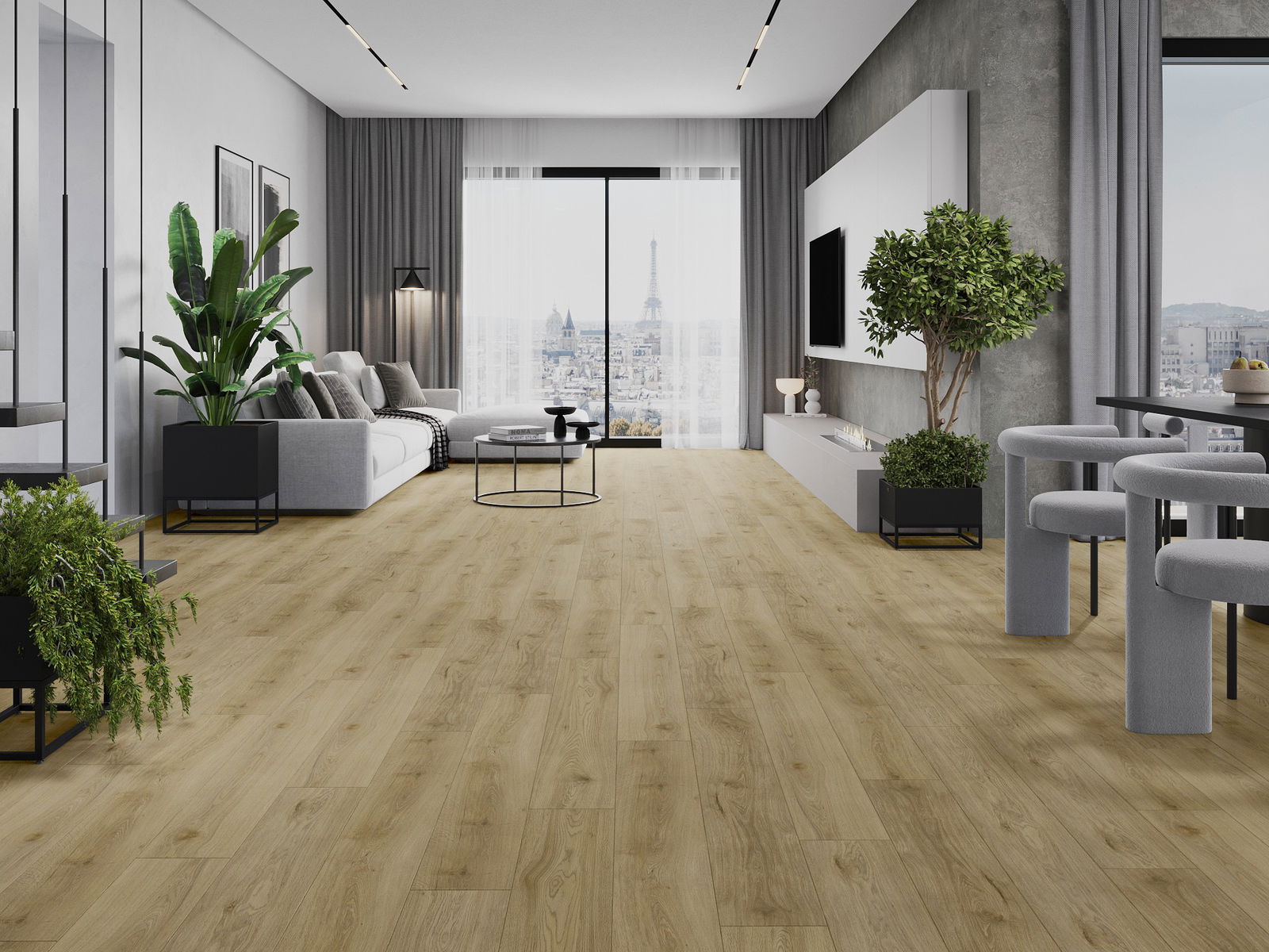 Vinylové panely nabízející vynikající odolnost a styl. Díky tloušťce 6,5 mm a tvrdému polymer-kamennému kompozitu poskytují odolnost proti poškrábání a mechanickému poškození. Panely jsou vodotěsné (100%) a vybaveny 4-strannou V-Fugou, což zaručuje estetický vzhled. Integrovaný podklad IXPE o tloušťce 1,5 mm zvyšuje komfort použití a způsob montáže Uniclick 2G usnadňuje instalaci. Ideální pro použití v domech s nízkoteplotním podlahovým topením.