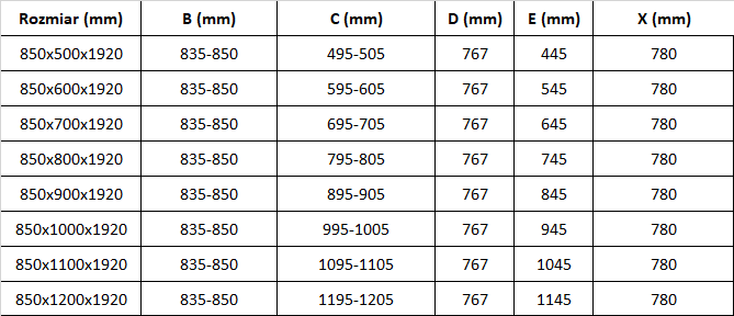 Velikost: 85x80 cm (dveře 85 cm, stěna 80 cm)