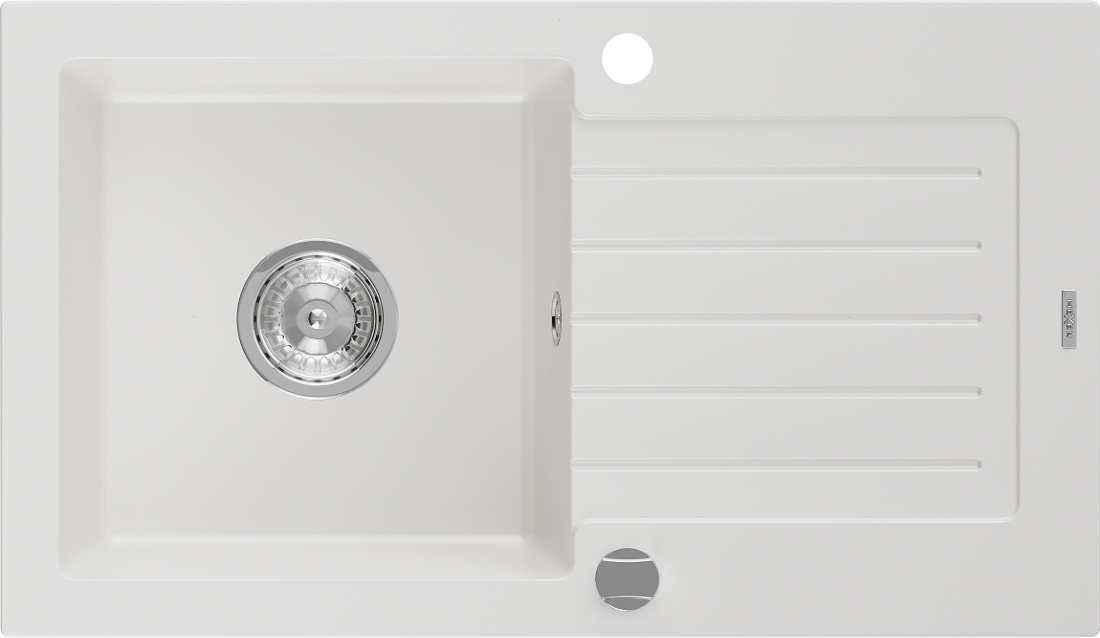 Mexen Pablo granitový dřez 1-komorový s odkapávačem 752 x 436 mm, bílý, sifon chrom - 6510751010-20