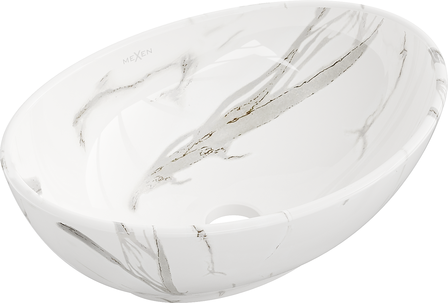 Mexen Elza je elegantní umyvadlo na desku o rozměrech 40,5 x 33 cm, vyrobené z vysoce kvalitní sanitární keramiky v barvě bílého kamene. Jeho oválný tvar a lesklý povrch dodávají moderní charakter každé koupelně. Díky hloubce 12,5 cm produkt zajišťuje komfort užívání a absence otvorů na baterii a přepad jej dokonale začleňuje do minimalistických aranžmá. Navíc je umyvadlo chráněno ochranným povlakem, což usnadňuje jeho údržbu.
