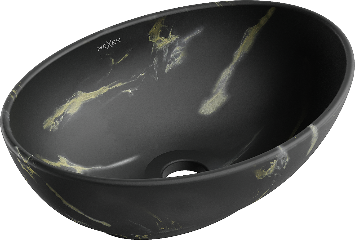 Mexen Elza je elegantní umyvadlo na desku o rozměrech 40,5 x 33 cm ve stylové černé barvě kamene. Je vyrobeno ze sanitární keramiky a vyznačuje se trvanlivostí a moderním designem. Toto umyvadlo má oválný tvar a matný povrch, což mu dodává jemný, ale sofistikovaný vzhled. Absence otvorů pro baterii a přepad činí toto umyvadlo ideálním pro minimalistické uspořádání. Díky ochranné povrchové vrstvě je výrobek snadno udržovatelný a uchovává si svůj lesk po dlouhou dobu.