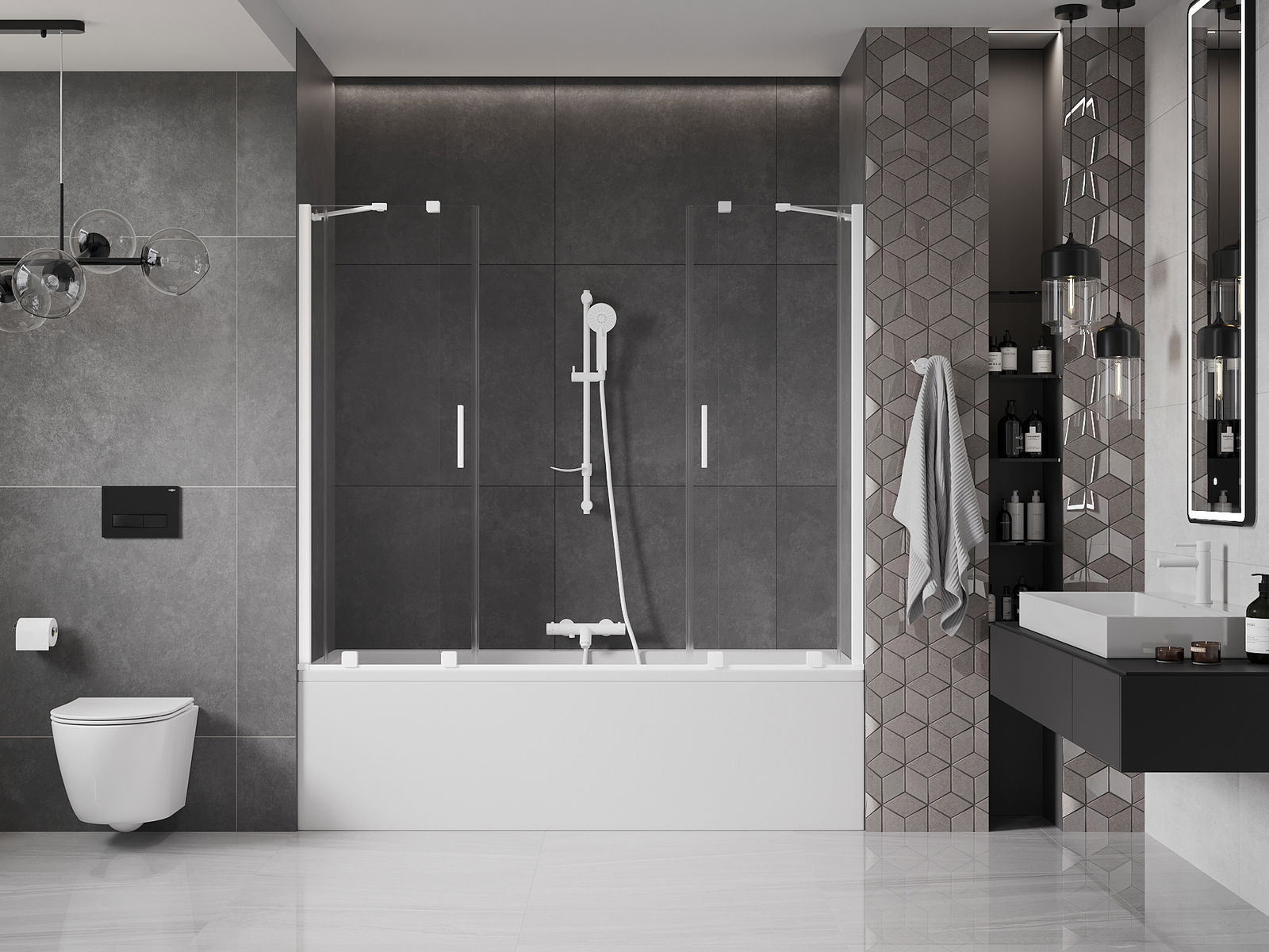 Díky použití univerzálního montážního systému může být paraván namontován na pravé nebo levé straně, podle potřeby. Tímto způsobem můžete snadno navrhnout sprchu přizpůsobenou prostoru koupelny.