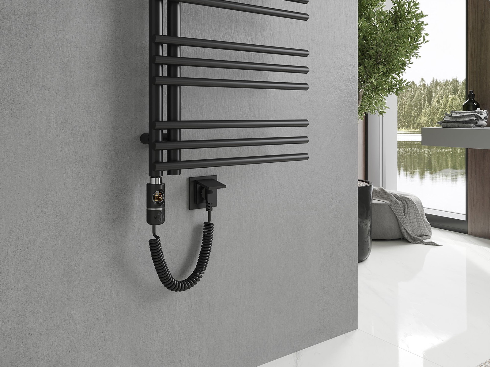 Zabudovaný termostat udržuje požadovanou teplotu radiátoru