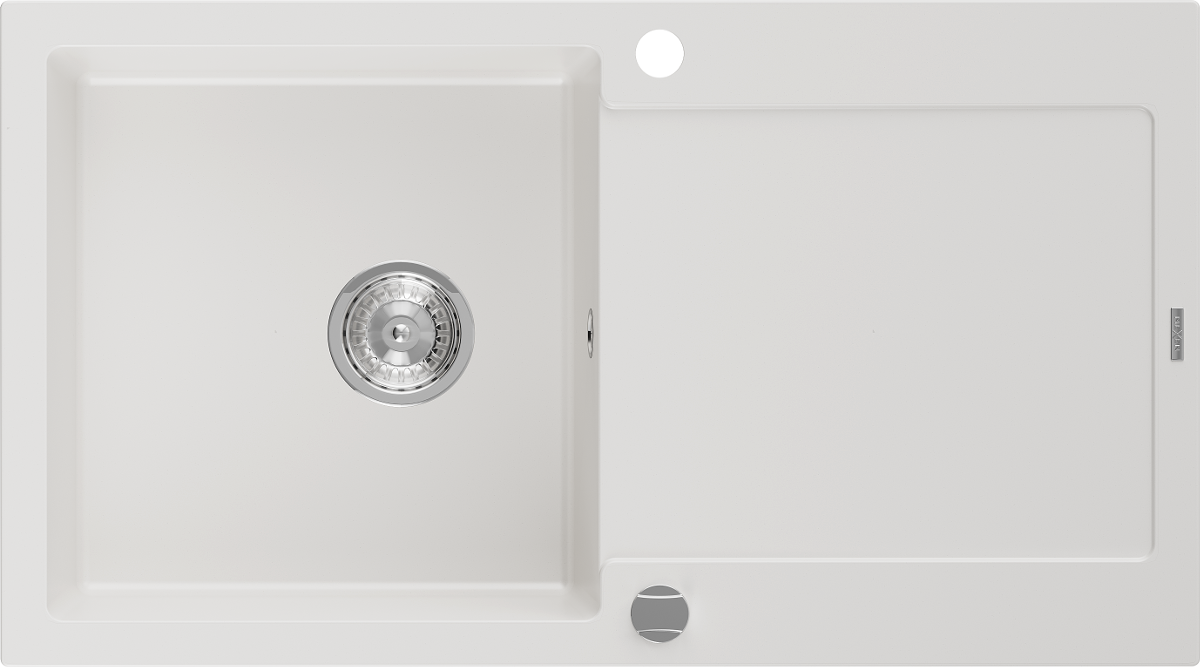 Mexen Leo granitový dřez 1-komorový s odkapávačem 900 x 500 mm, bílý, sifon chrom - 6501901010-20