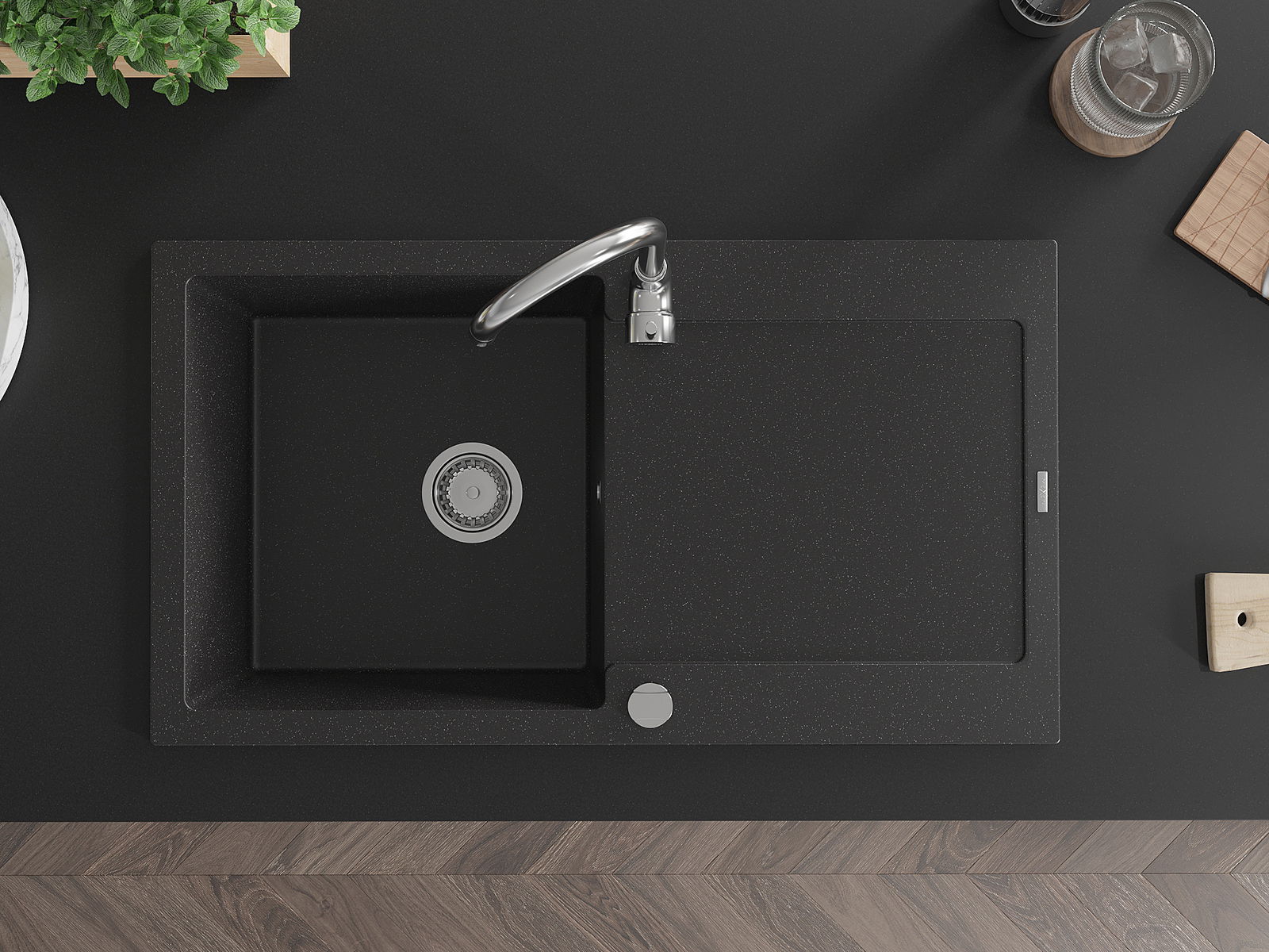 Dřez byl vyroben z vysoce kvalitního granitu. Představuje elegantní a především praktický doplněk každé kuchyně, bez ohledu na její styl. Vysoká kvalita a trvanlivost granitu zajišťují dlouholeté používání.