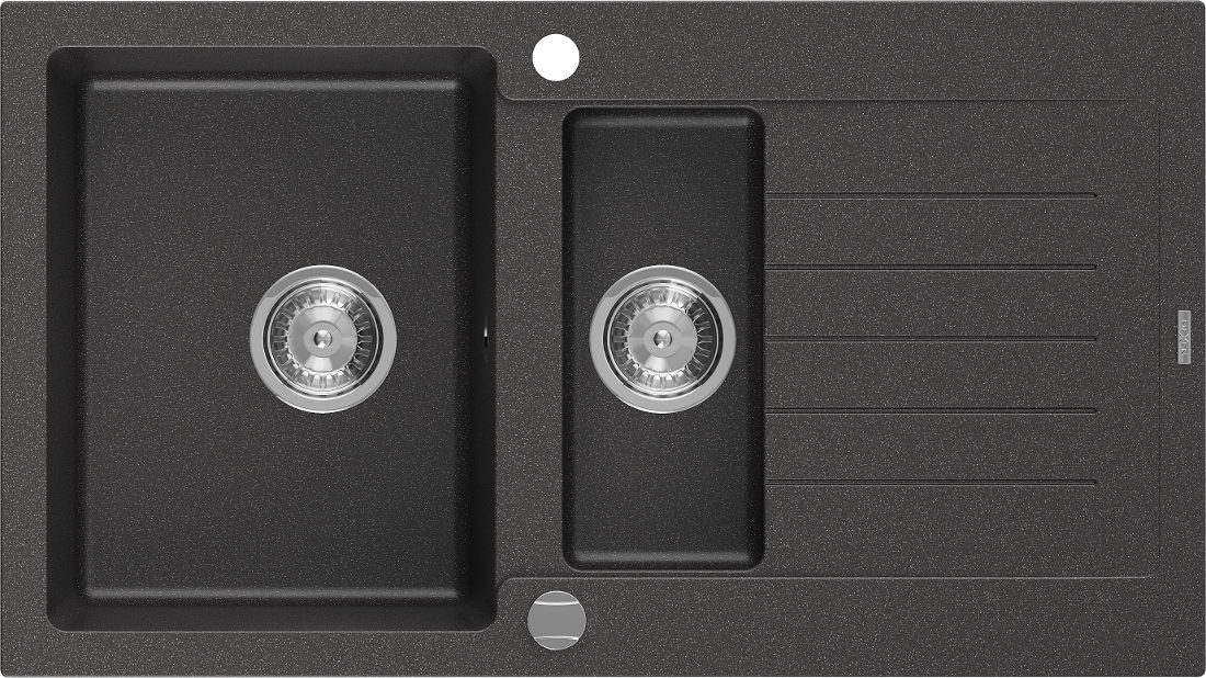 Mexen Matias žulový dřez 1,5-dřez s odkapávačem 900 x 505 mm, černý s tečkami, sifon chrom - 6502901505-76