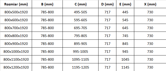 Velikost: 80x80 cm (dveře 80 cm, stěna 80 cm)