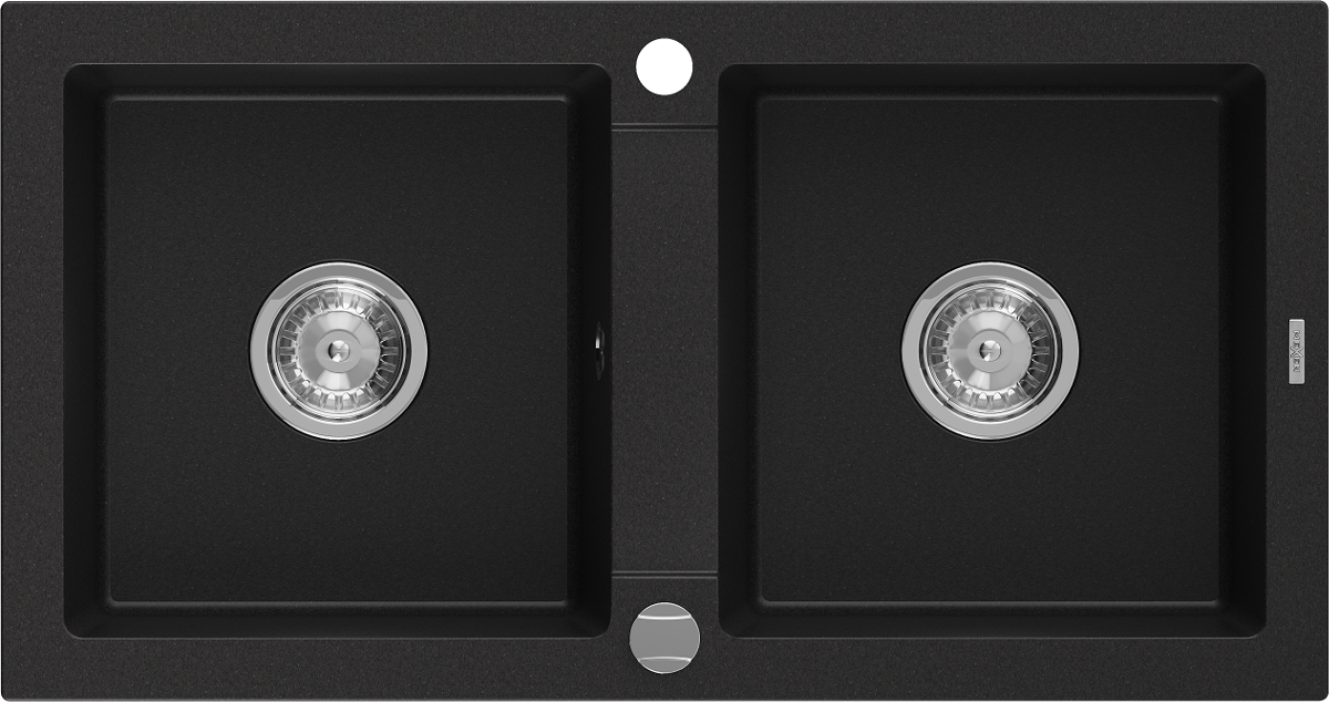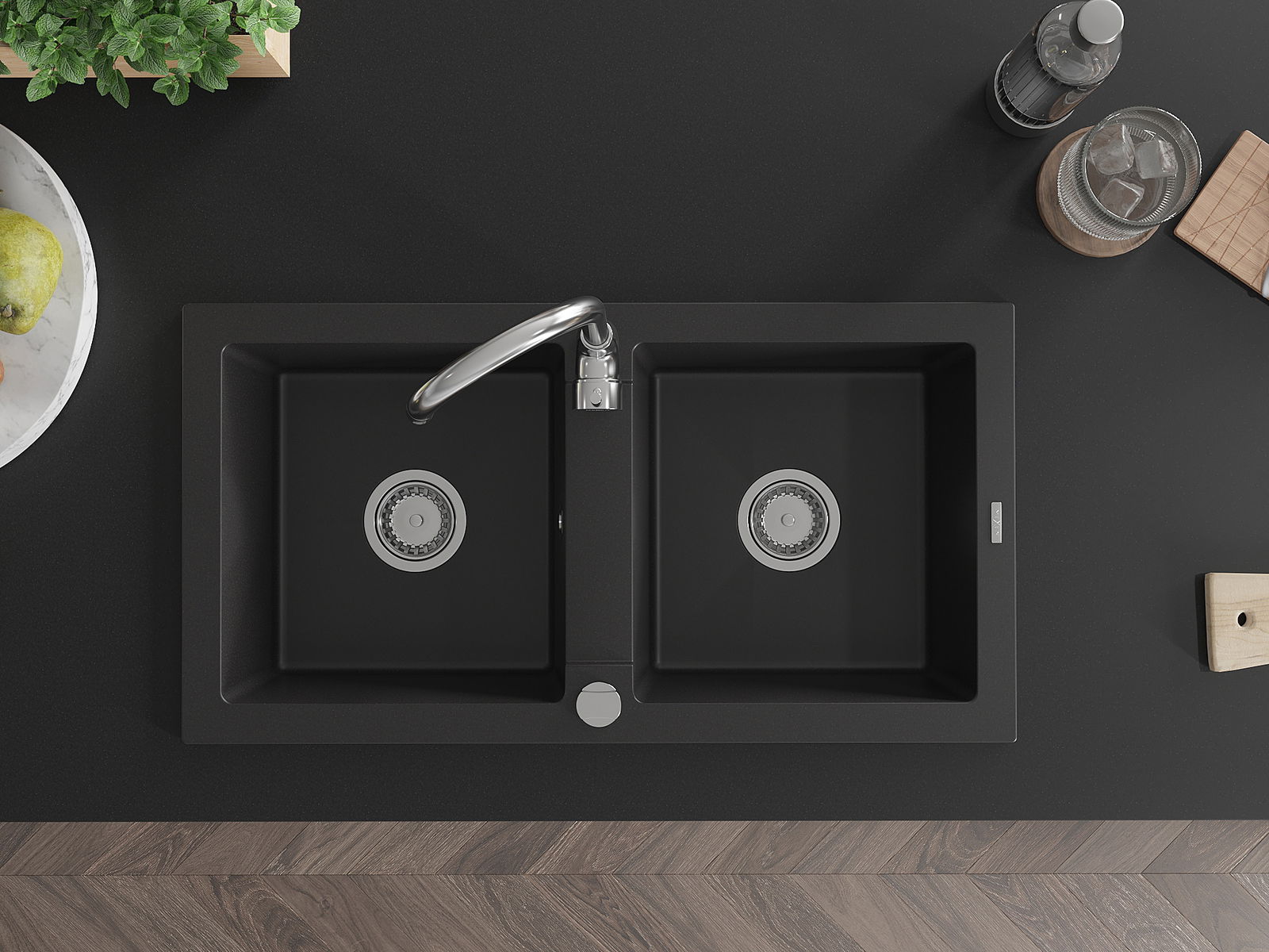 Mexen Mario dvoukomorový žulový dřez 820 x 436 mm, černý, sifon chrom - 6504822000-77