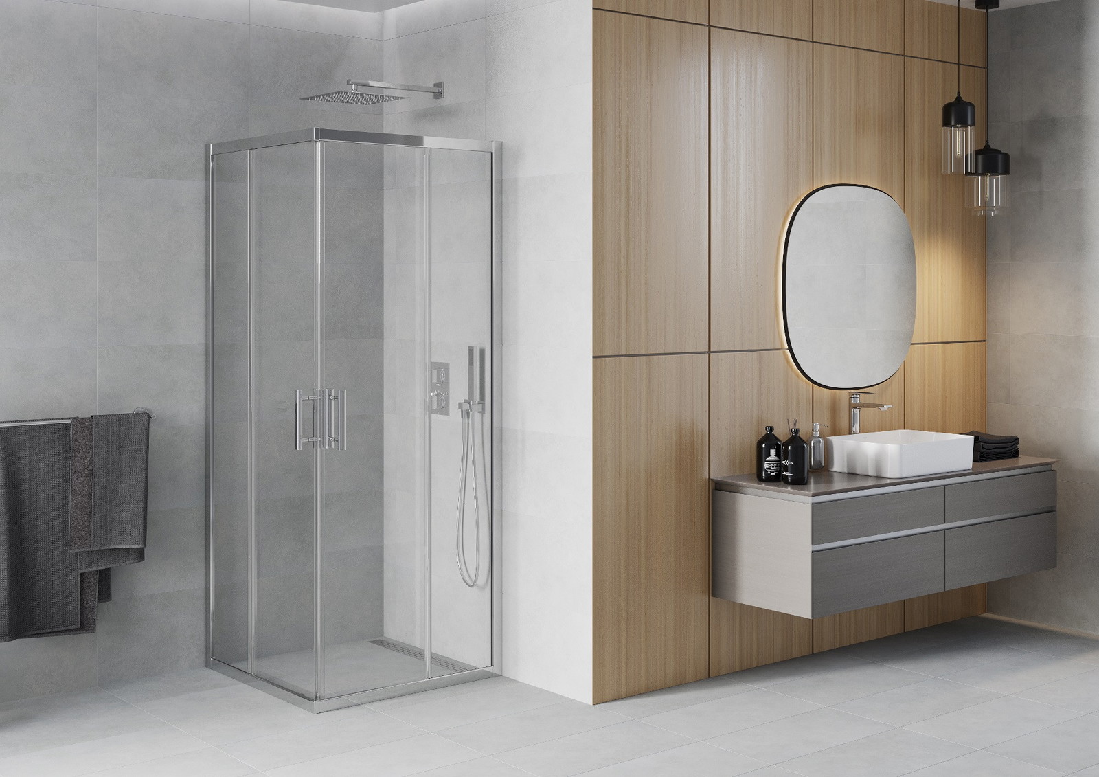 Posuvné dveře se pohybují po speciálních vodítkách a nevyžadují další prostor pro jejich otevření, proto se hodí do menších koupelen. Díky dvojitým válečkům z odolného plastu je jejich pohyb plynulý.