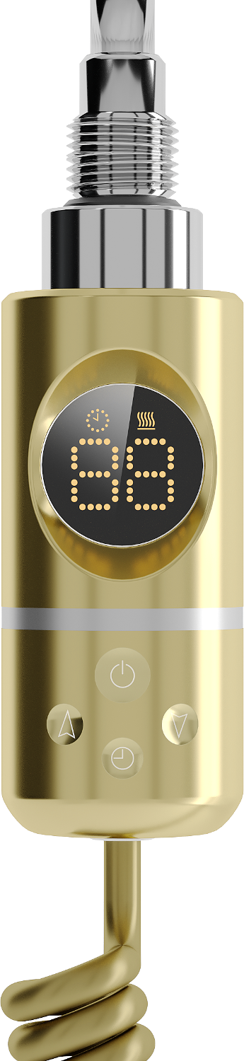 Mexen FA-I elektrické topné těleso 900 W, zlaté je moderní zařízení o celkové délce 866 mm a topném výkonu 900 W. Vybavené připojovacím kabelem o délce 1,5 m a závitem G 1/2", zajišťuje výkon a bezpečnost díky stupni ochrany IP44. Má funkce jako Sensitive, Comfort s možností sušení a dětskou pojistkou. LED displej informuje o provozním režimu a další ochrana chrání před provozem na sucho.