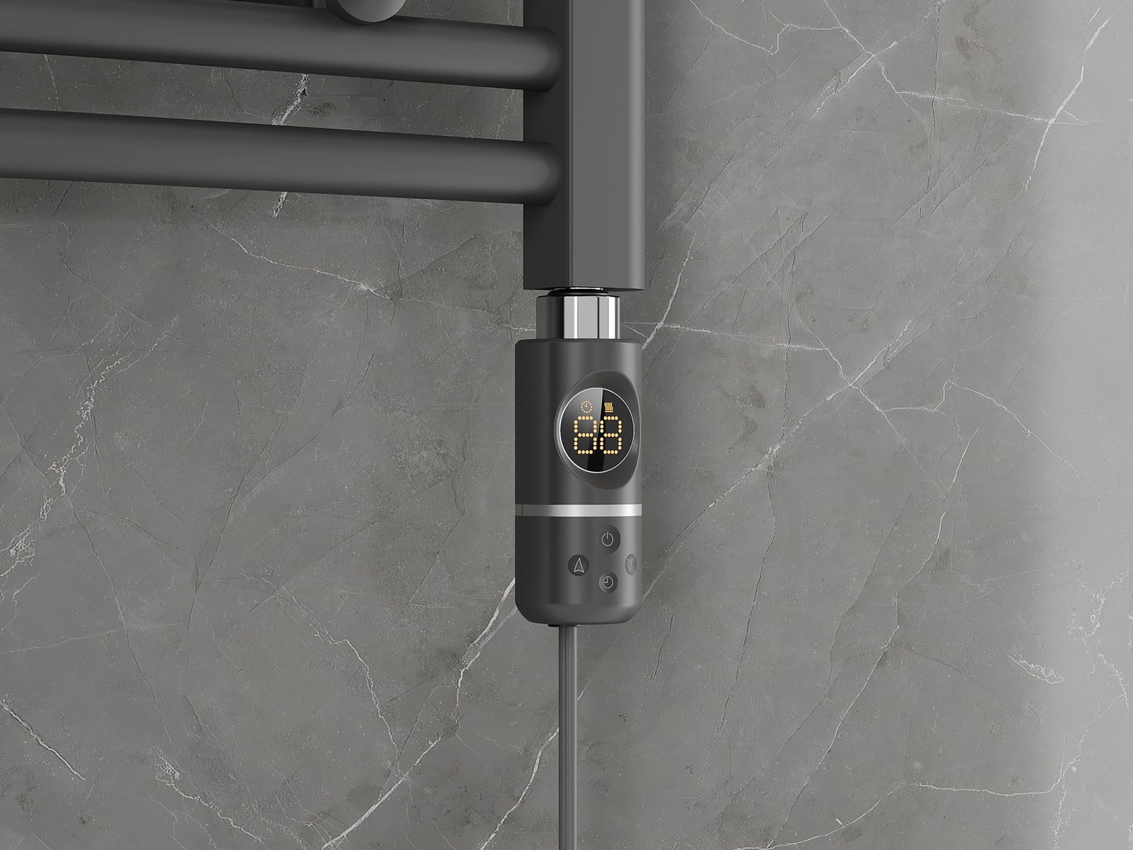 Mexen FA-I elektrické topné těleso 900 W v barvě antracit je vynikajícím řešením pro váš domov. Nabízí tepelný výkon 900 W a funkce jako LED displej informující o provozním režimu, možnost nastavení teploty v rozsahu 40°C-65°C a také funkci sušení. Navíc topné těleso disponuje dětskou pojistkou a ochranou proti provozu na sucho, což zajišťuje bezpečnost a komfort používání. Délka topného prvku je 750 mm a připojovací kabel má délku 1,5 m.