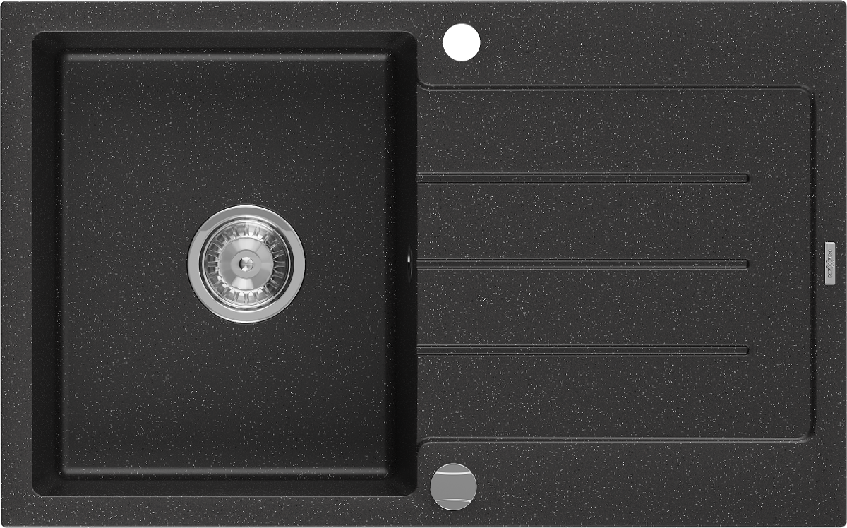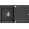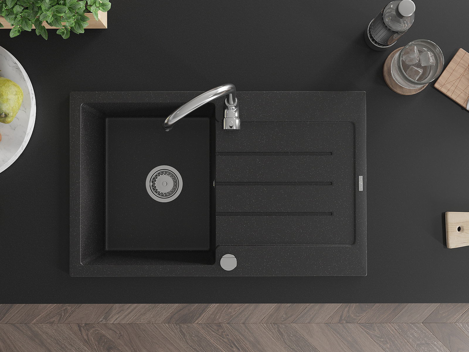 Mexen Bruno jednokomorový granitový dřez s odkapávačem 795 x 495 mm, černý/stříbrný metalik, sifon chrom- 6513791010-73