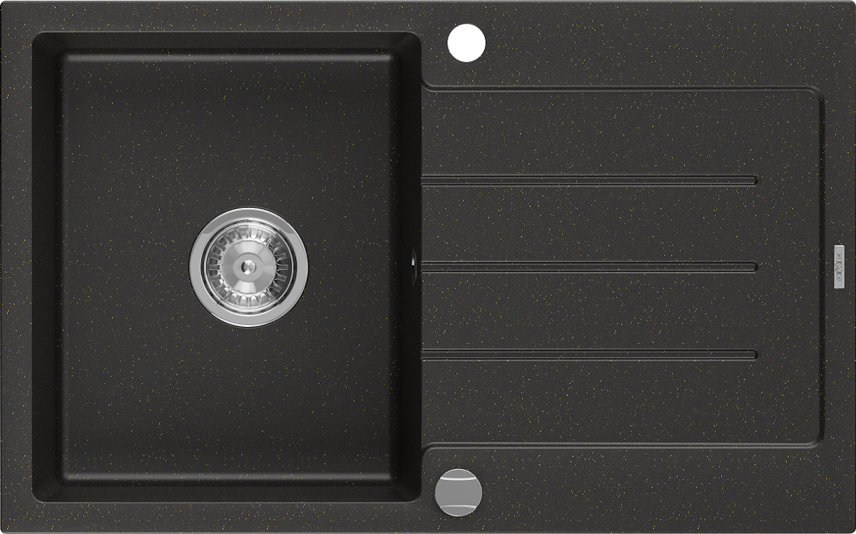 Mexen Bruno granitový dřez s odkapávačem 1-komorový 795 x 495 mm, černý/zlatý metalik, sifon chrom- 6513791010-75