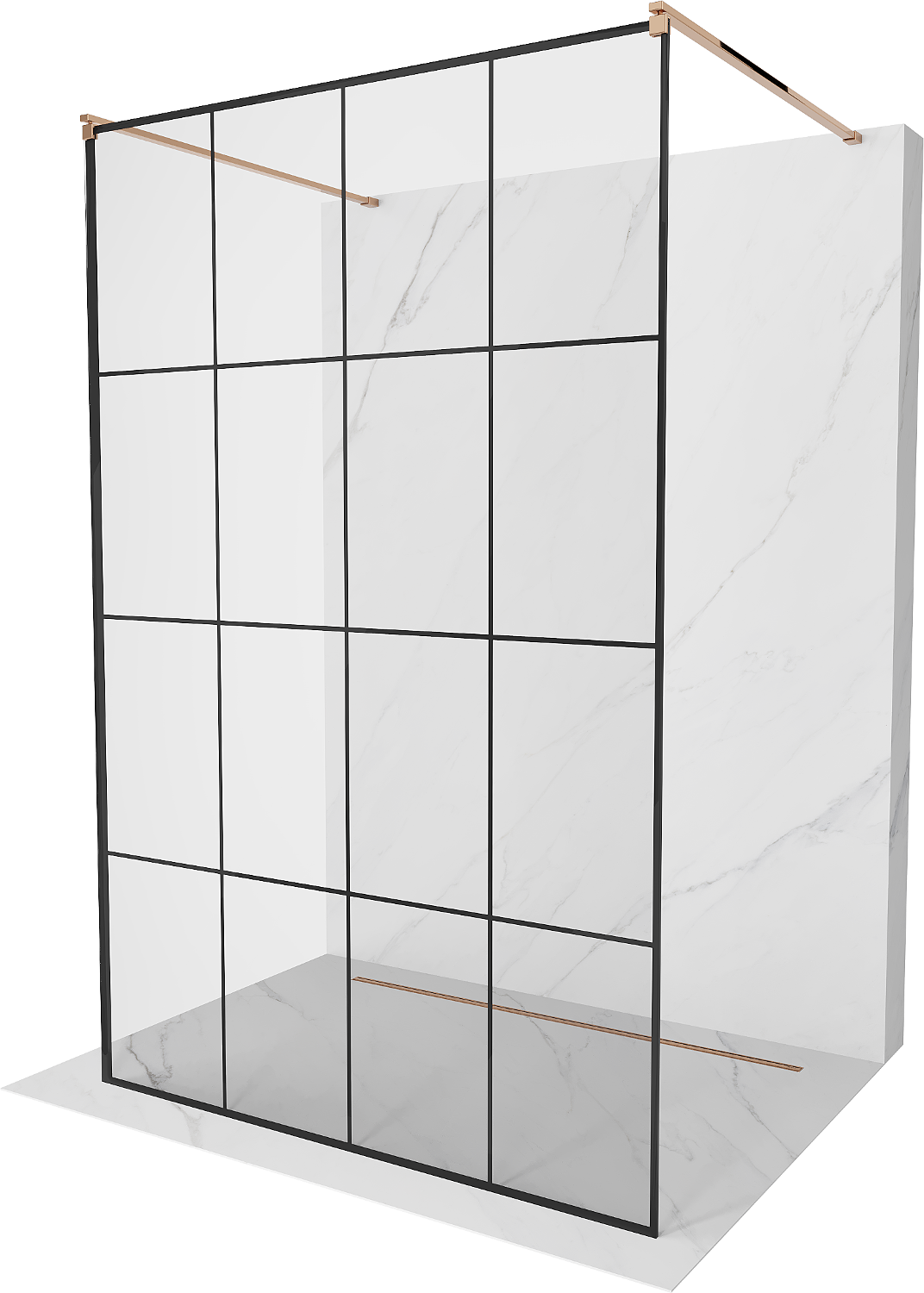 Mexen Kioto volně stojící sprchová stěna 150 x 200 cm, černá mřížka 8 mm, růžové zlato - 800-150-002-60-77