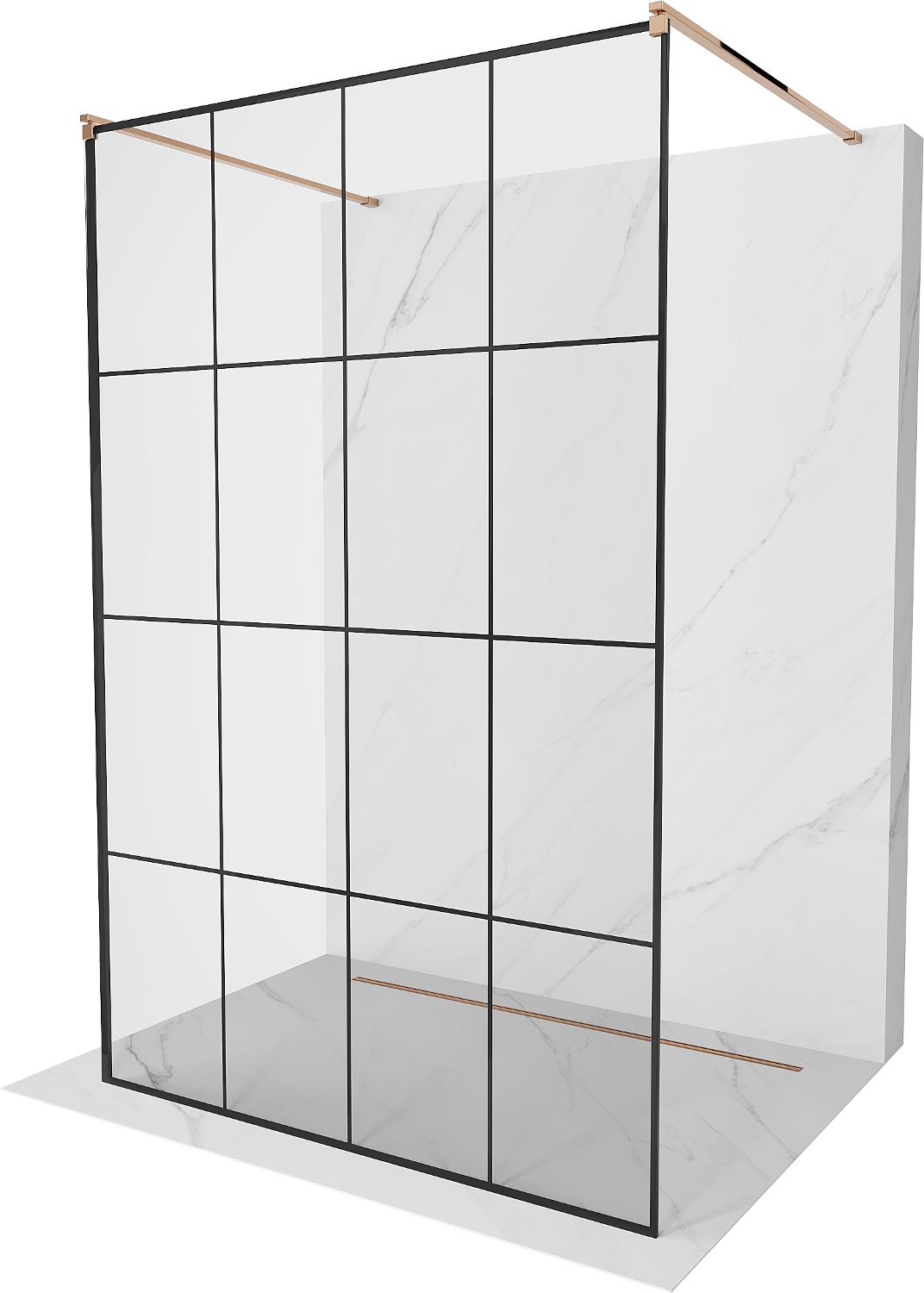 Mexen Kioto volně stojící sprchová stěna 160 x 200 cm, černá mřížka 8 mm, růžové zlato - 800-160-002-60-77