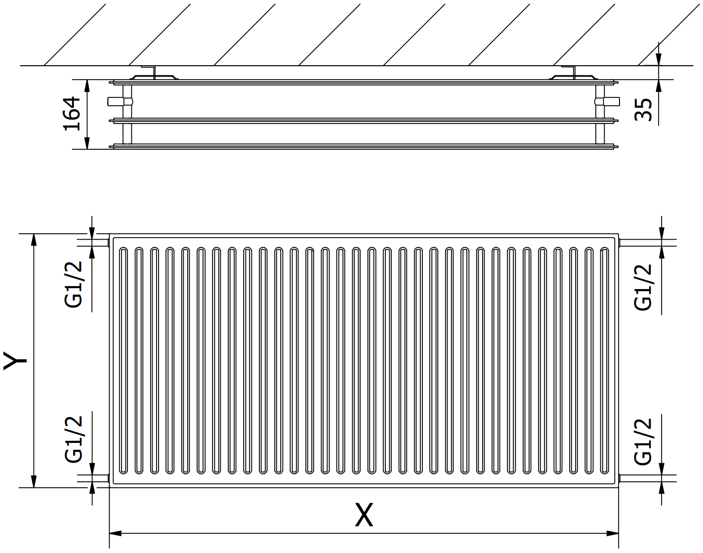 Mexen CH30 Hygienický deskový radiátor 400 x 1000 mm, boční připojení, 1096 W, antracit - W430H-040-100-66