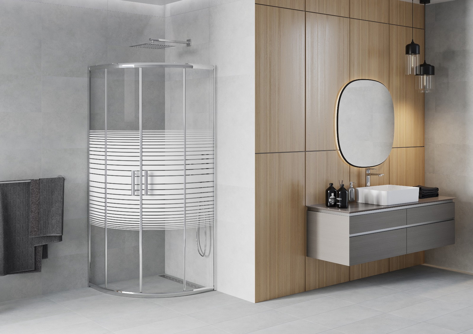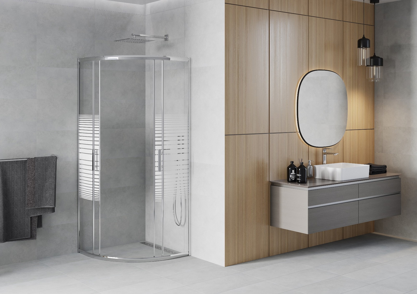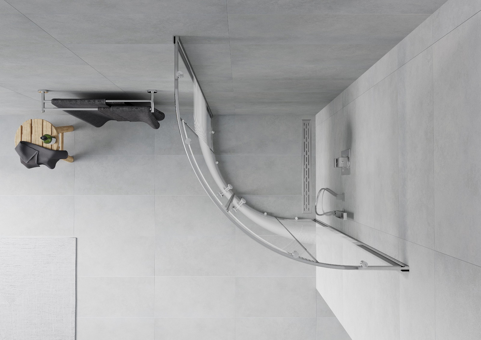 Praktická a pohodlná rukojeť je vyrobena z odolného a trvanlivého kovu. Moderní tvar ve spojení s povrchovou úpravou, která ladí s barvou profilů, dodává celku moderní a stylový vzhled, zdůrazňující estetiku každé koupelny.