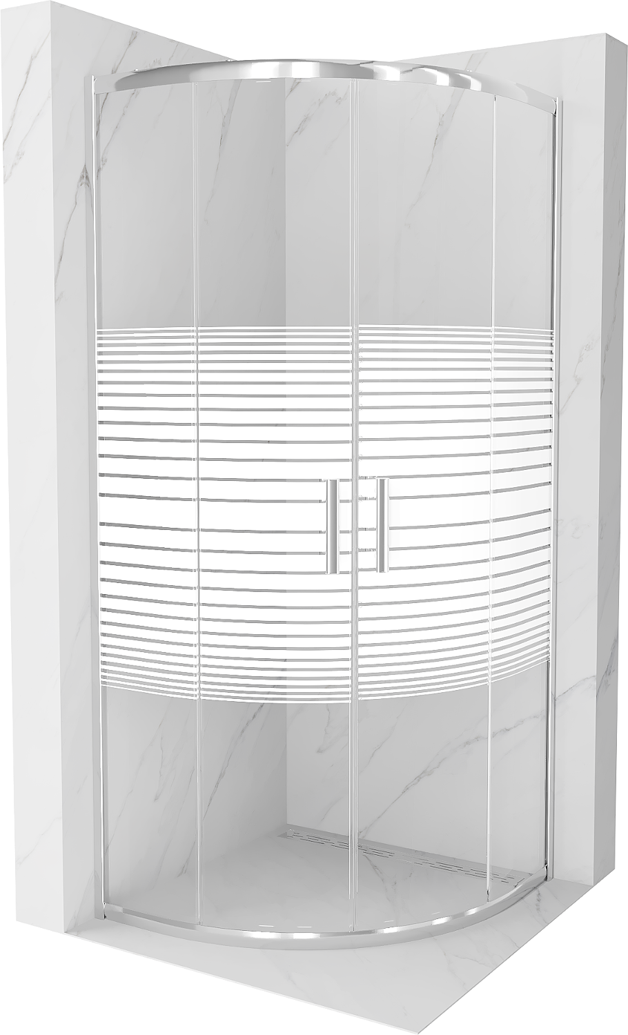Mexen Rio sprchový kout půlkruhový 80 x 80 cm, bílé pruhy, chrom - 863-080-080-01-20