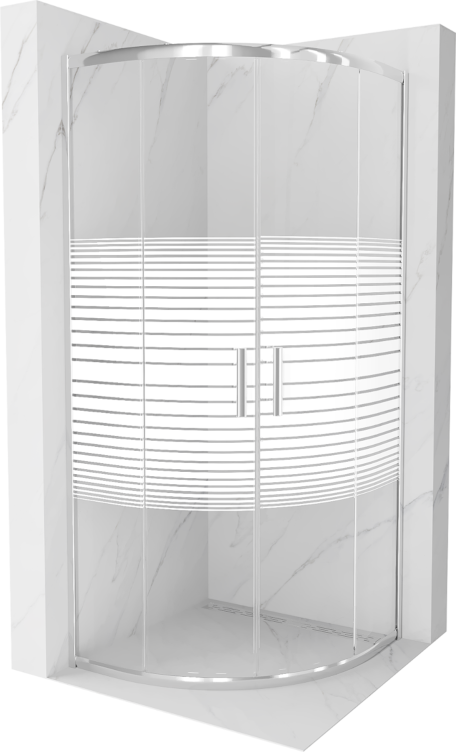 Mexen Rio půlkruhová sprchová kabina 90 x 90 cm, bílé pruhy, chrom - 863-090-090-01-20