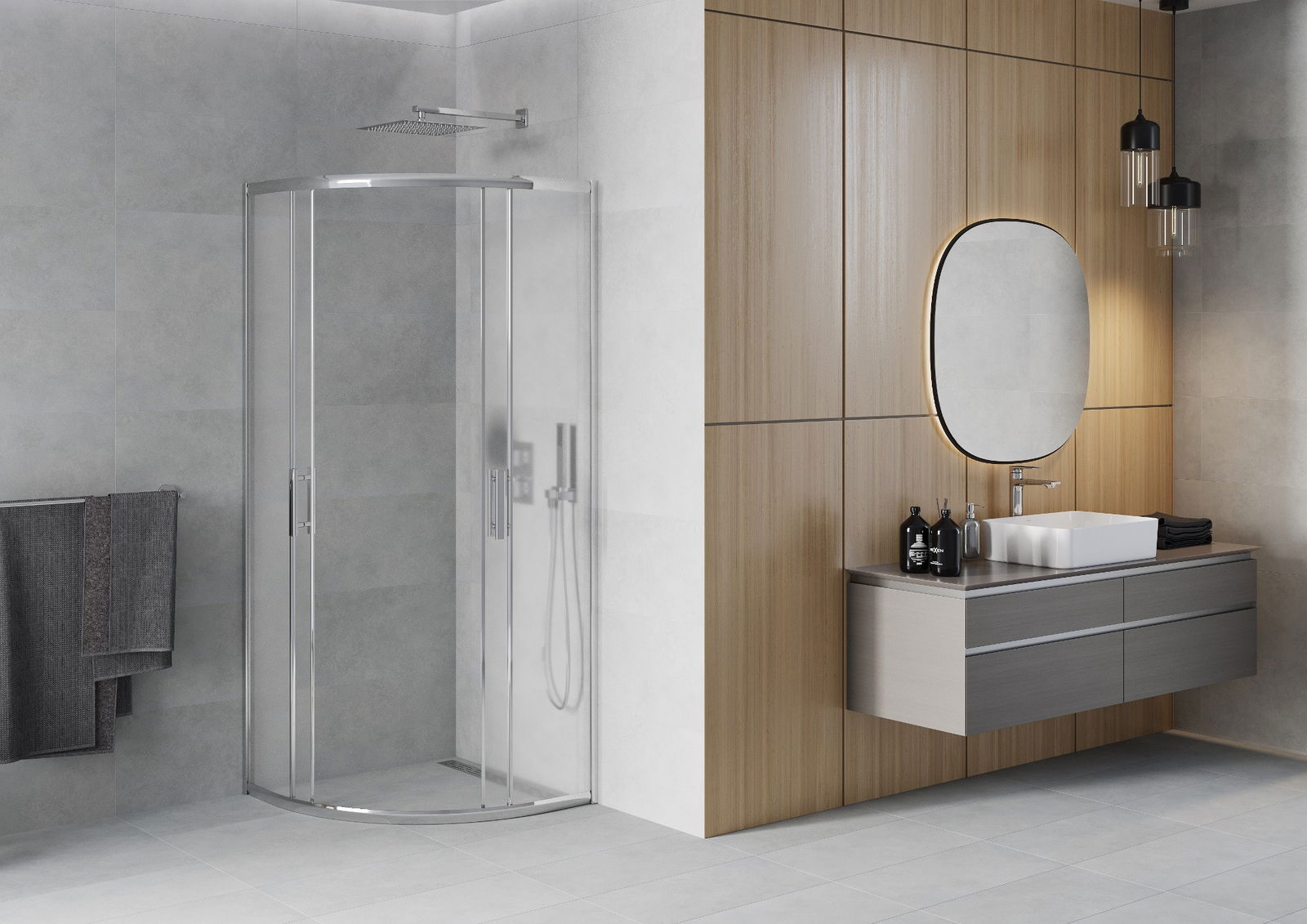 Praktická a pohodlná rukojeť je vyrobena z odolného a trvanlivého kovu. Moderní tvar ve spojení s povrchovou úpravou, která ladí s barvou profilů, dodává celku moderní a stylový vzhled, zdůrazňující estetiku každé koupelny.