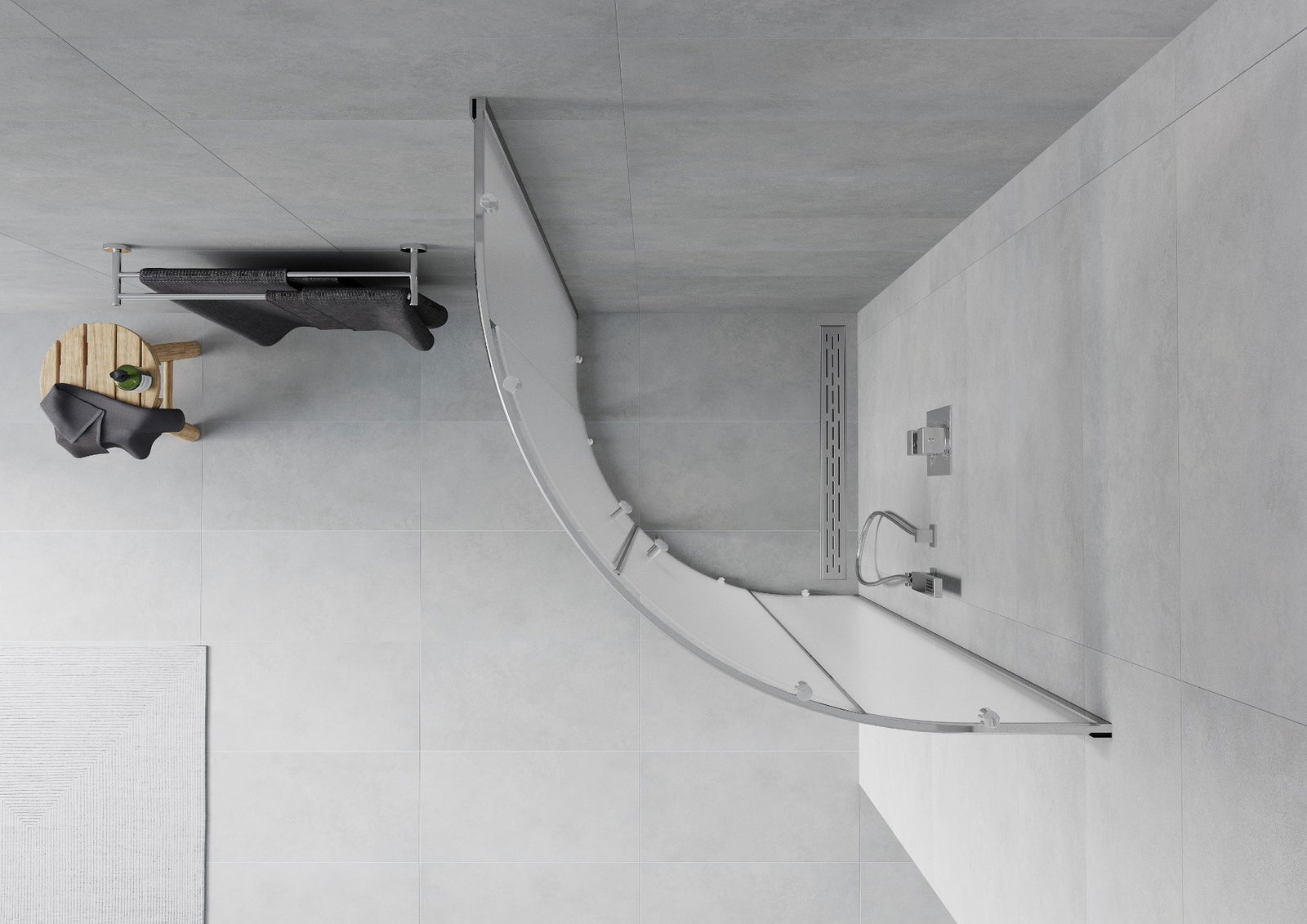 Produkt lze podle potřeby namontovat jak na sprchovou vaničku, tak přímo na podlahu. Univerzální způsob montáže umožňuje přizpůsobení produktu různým typům koupelen a konfiguracím prostor.