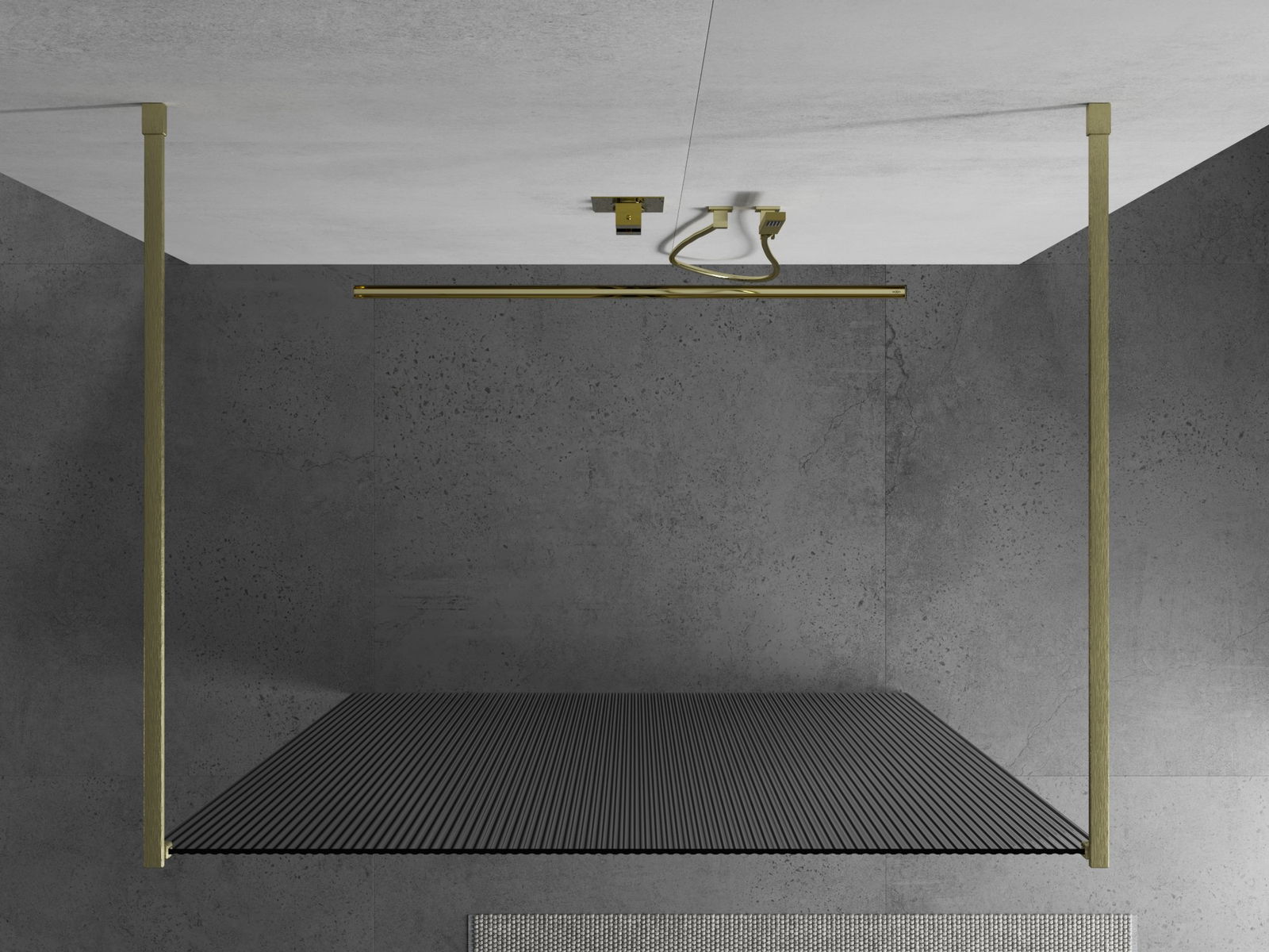 Mexen Kioto volně stojící sprchová stěna 140 x 200 cm, proužkovaná 8 mm, zlato kartáčovaná - 800-140-002-55-09