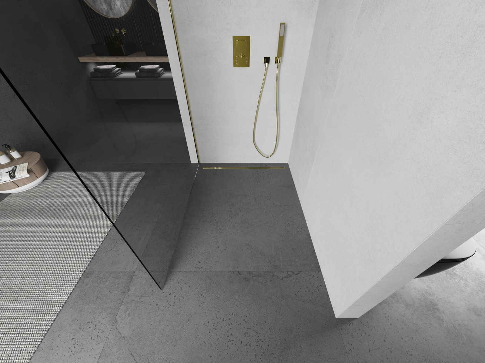 Mexen Kioto sprchová stěna Walk-in 125 x 200 cm, transparentní 8 mm, zlatá - 800-125-101-50-00