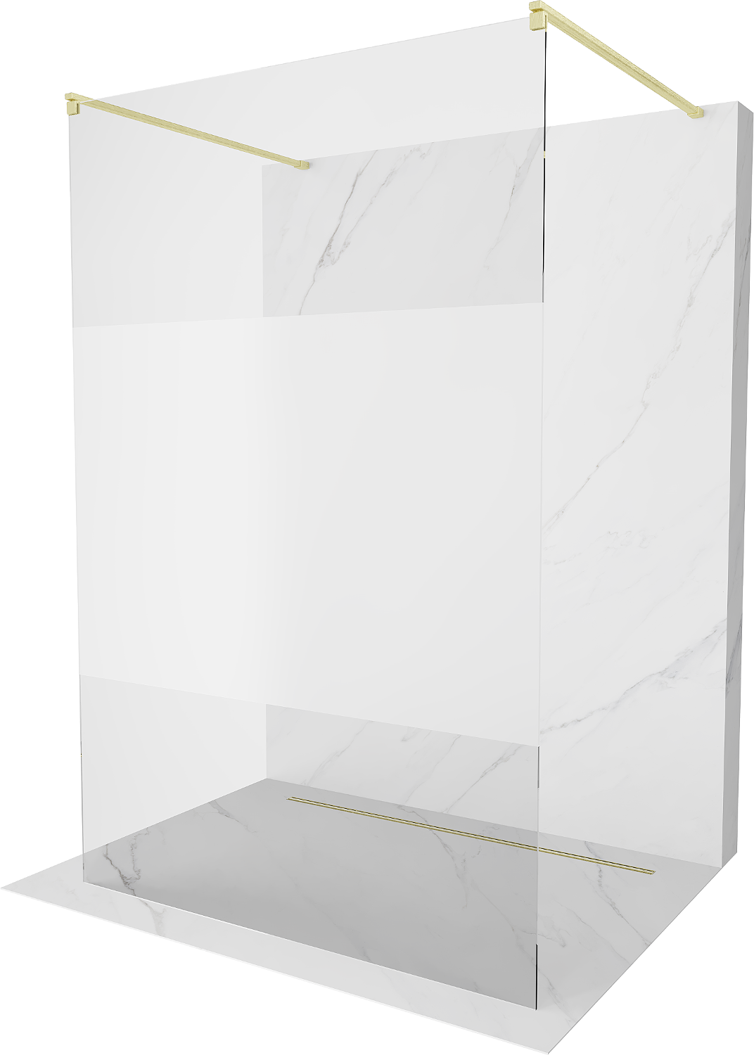 Mexen Kioto volně stojící sprchová zástěna 100 x 200 cm, transparentní/matná 8 mm, zlatá kartáčovaná - 800-100-002-55-35