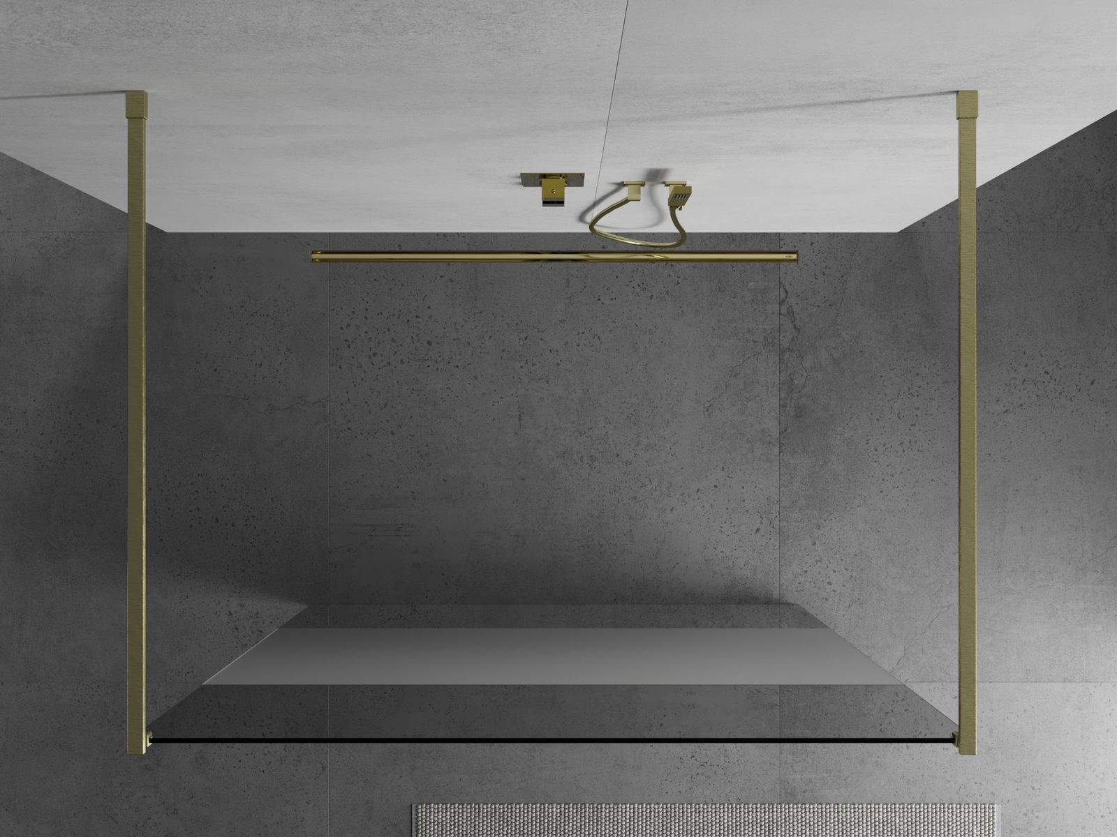 Mexen Kioto volně stojící sprchová stěna 140 x 200 cm, transparentní/matné 8 mm, zlatá kartáčovaná - 800-140-002-55-35