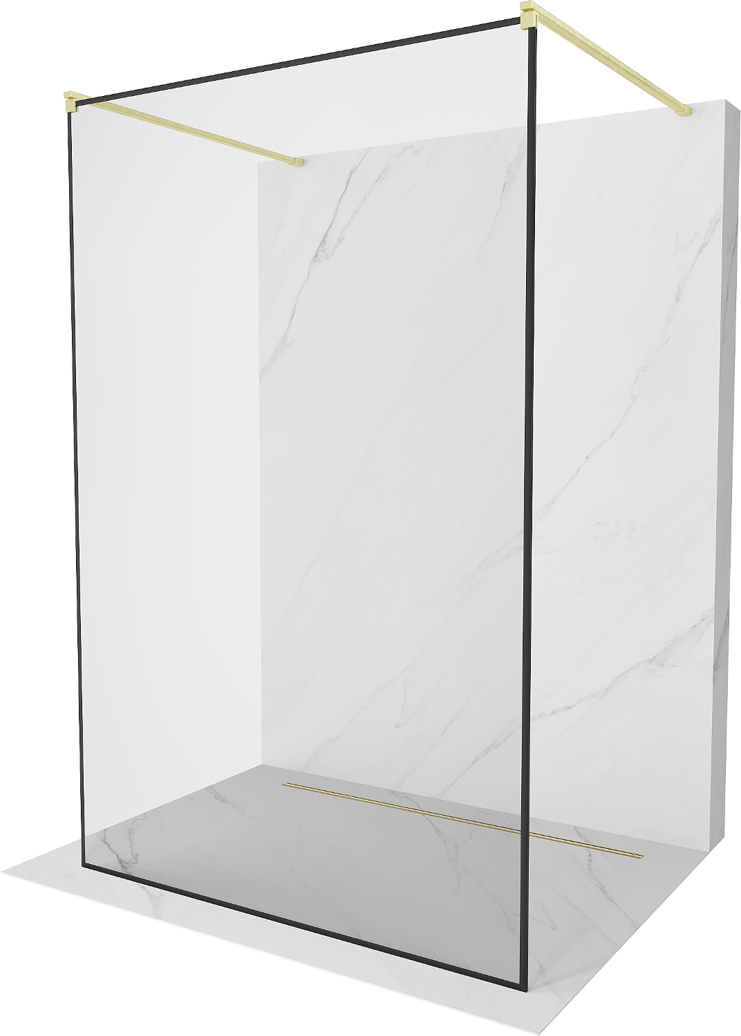 Mexen Kioto volně stojící sprchová zástěna 120 x 200 cm, černý rám 8 mm, zlatý kartáčovaný - 800-120-002-55-70