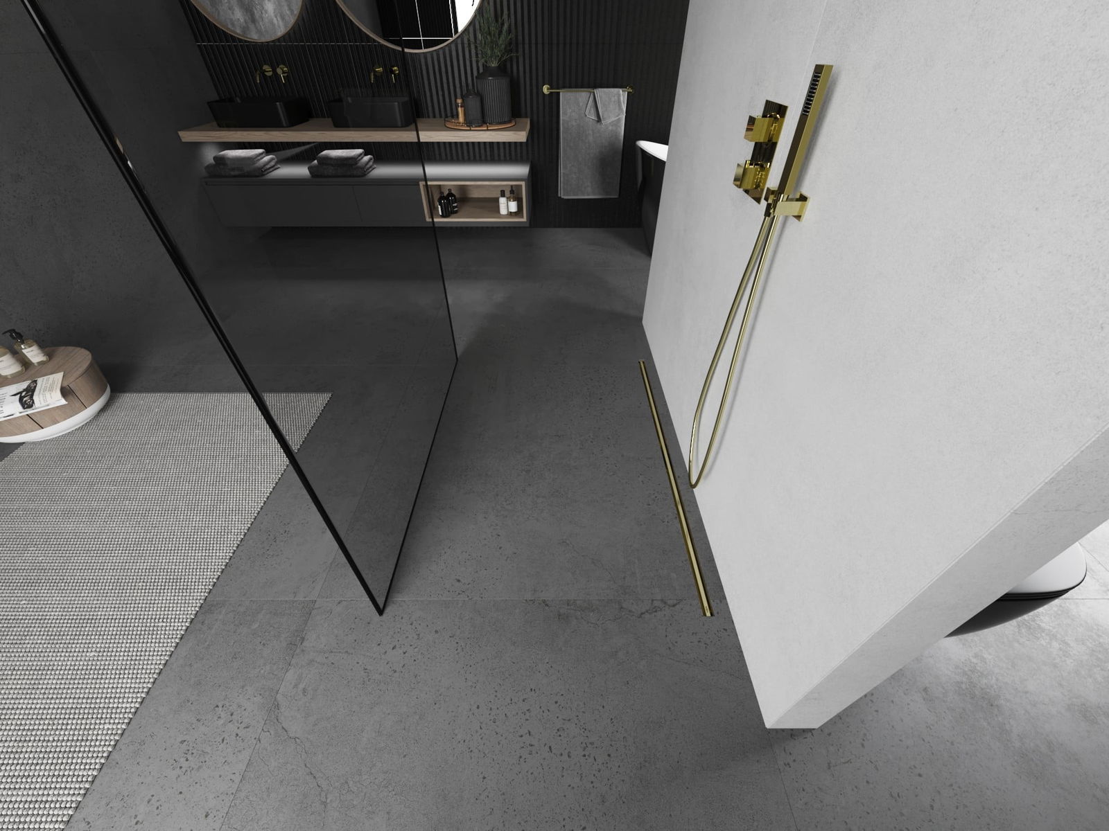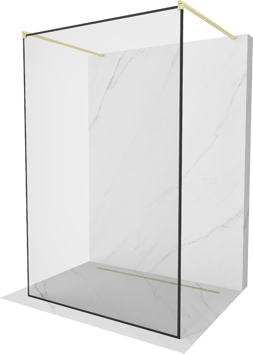 • Mexen Kioto volně stojící sprchová stěna 140 x 200 cm, černý rám 8 mm, zlatý kartáčovaný - 800-140-002-55-70