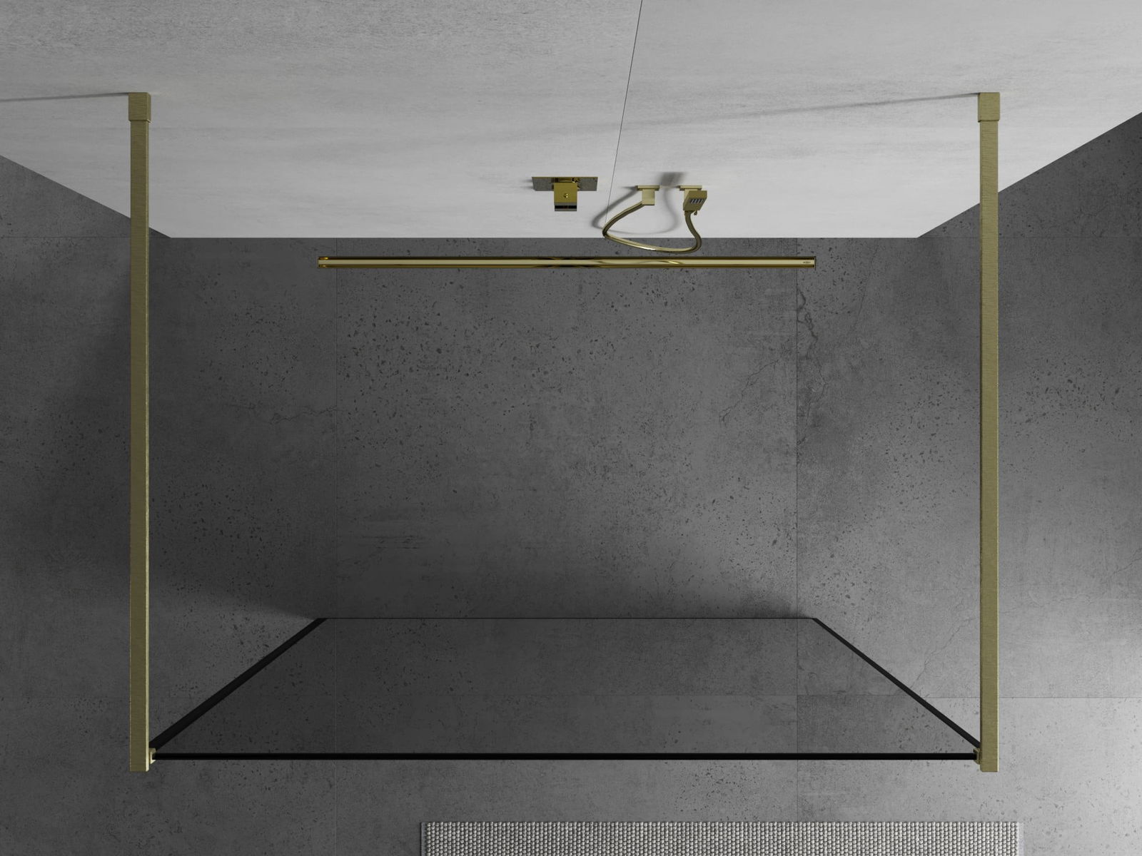 Mexen Kioto volně stojící sprchová stěna 140 x 200 cm, černý rám 8 mm, zlatý kartáčovaný - 800-140-002-55-70