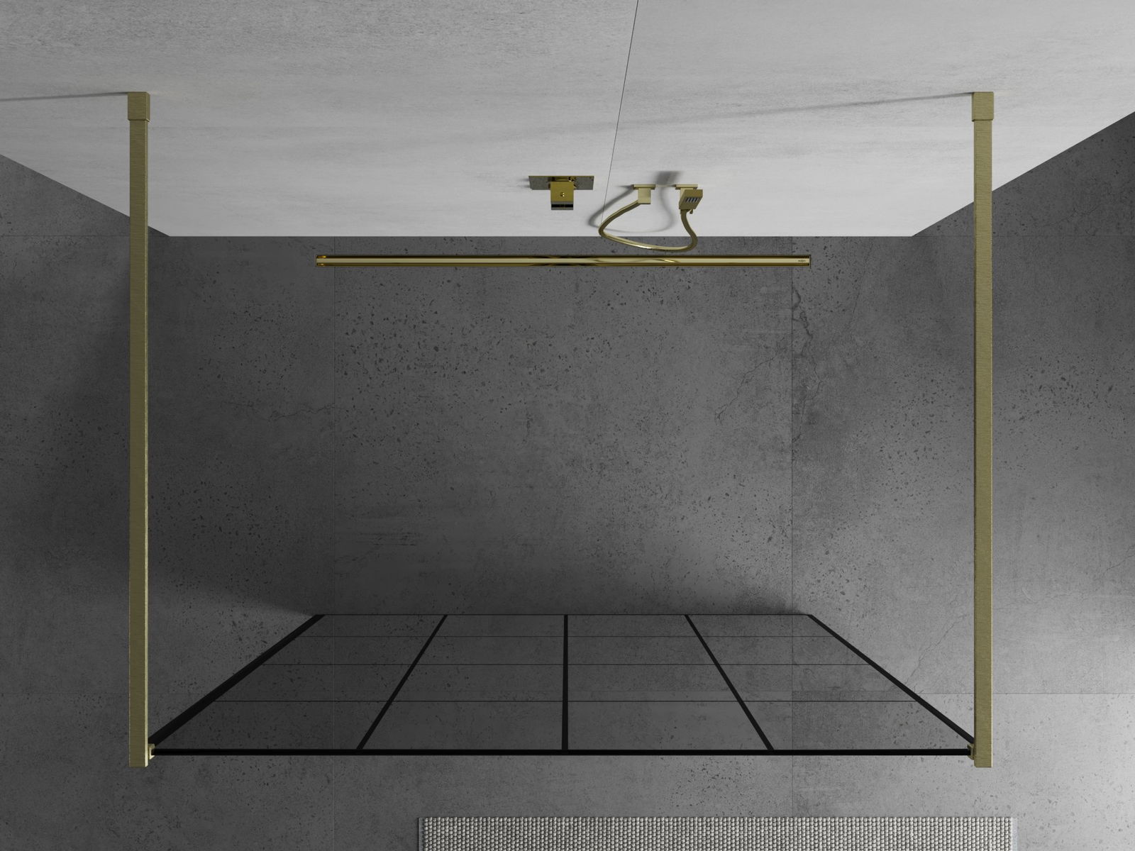 Mexen Kioto volně stojící sprchová stěna 140 x 200 cm, černá mřížka 8 mm, zlatá kartáčovaná - 800-140-002-55-77