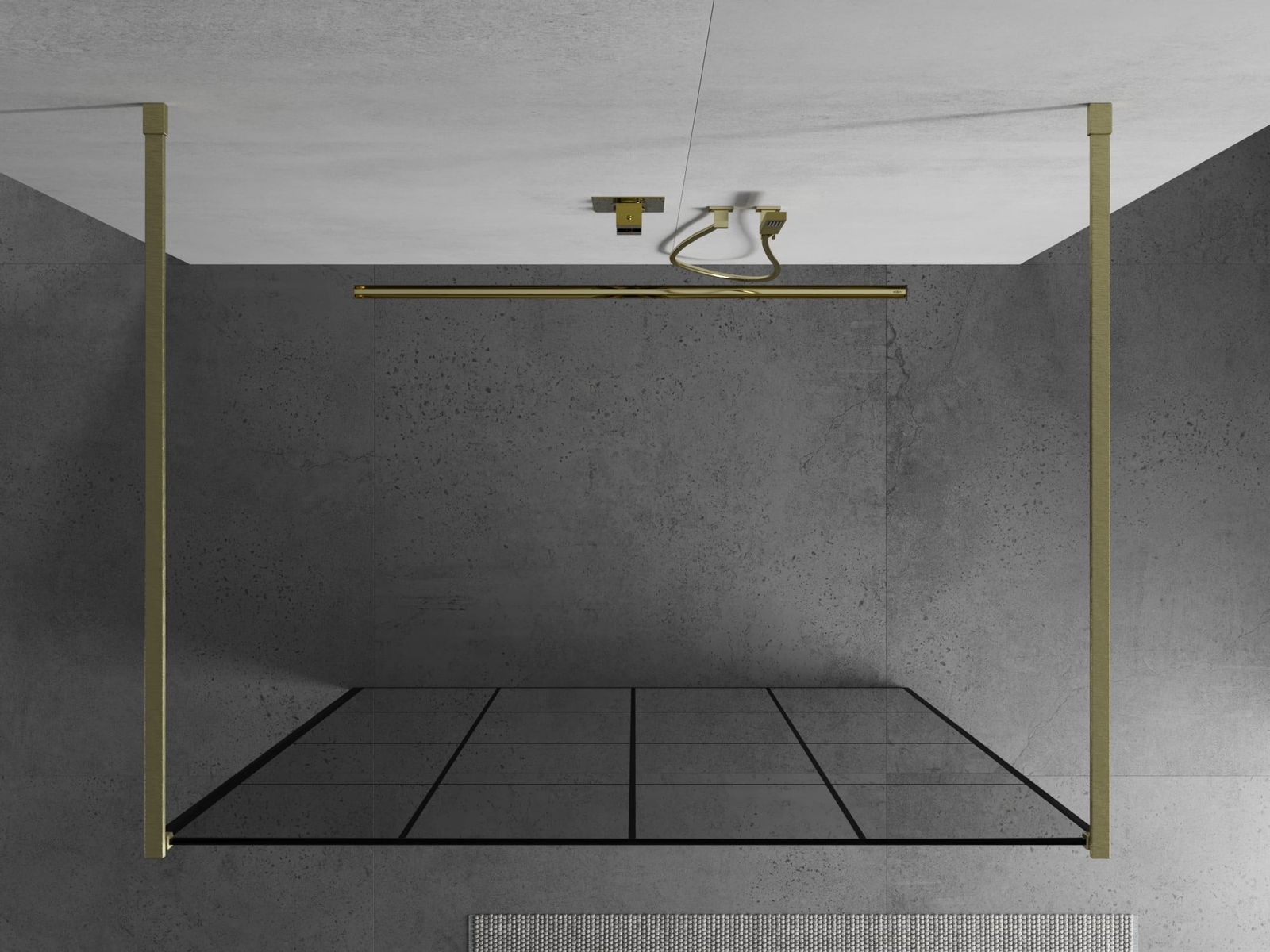 Mexen Kioto samostatně stojící sprchová stěna 160 x 200 cm, černá mřížka 8 mm, kartáčované zlato - 800-160-002-55-77