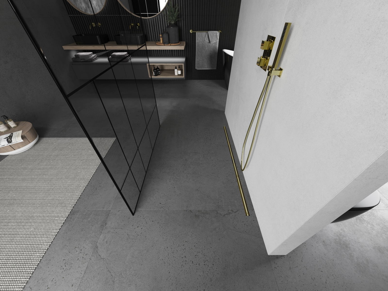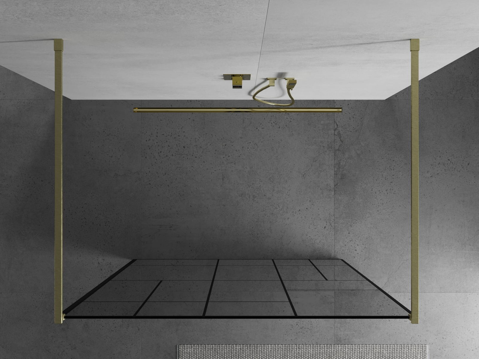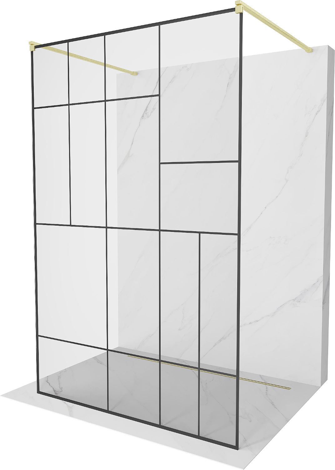 Mexen Kioto samostatně stojící sprchová stěna 110 x 200 cm, černý vzor 8 mm, zlatá kartáčovaná - 800-110-002-55-78